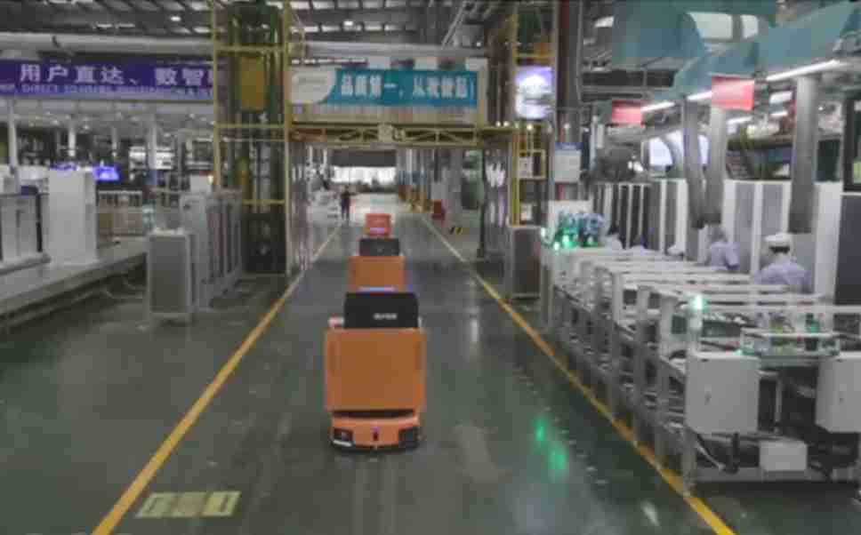 为车载冰箱物流配送打造的智能解决方案,,包含产中物流通过潜伏举升AMR搬运至线边,,,产后成品物流智能仓储,,,,流程包含产中物流智能齐套入库,,,线边安灯叫料AMR智能配送至线边,,,,成品入库、、、、出库,,,,通过无人堆高车机器人,,智能仓储管理替代人工作业管理,,,实现更高存储、、更高效率、、更具柔性化的解决方案。。。
